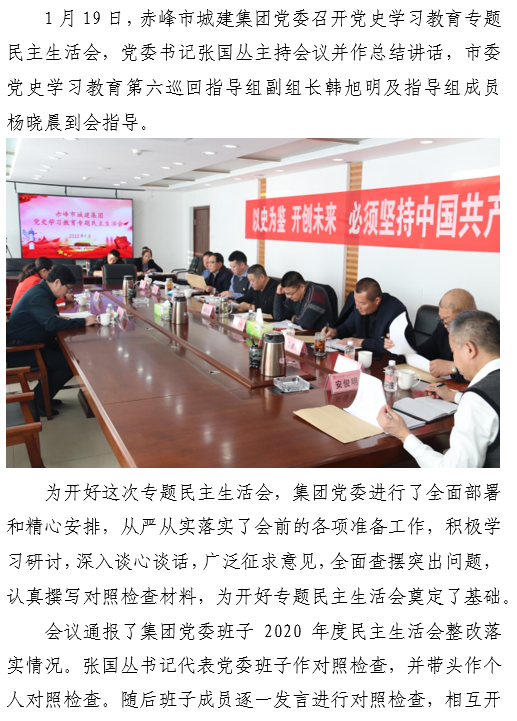 赤峰市城建集團(tuán)黨委 召開黨史學(xué)習(xí)教育專題民主生活會(huì)