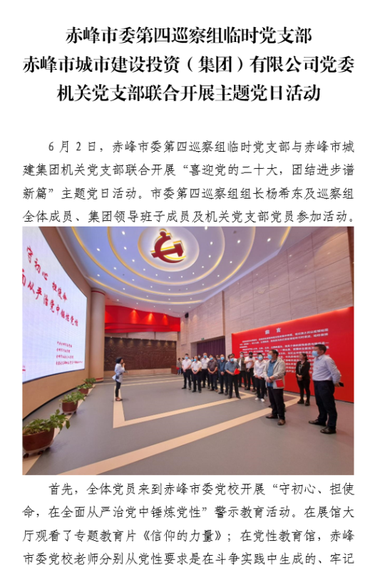 赤峰市委第四巡察組臨時黨支部 赤峰市城市建設(shè)投資(集團)有限公司黨委機關(guān)黨支部聯(lián)合開展主題黨日活動