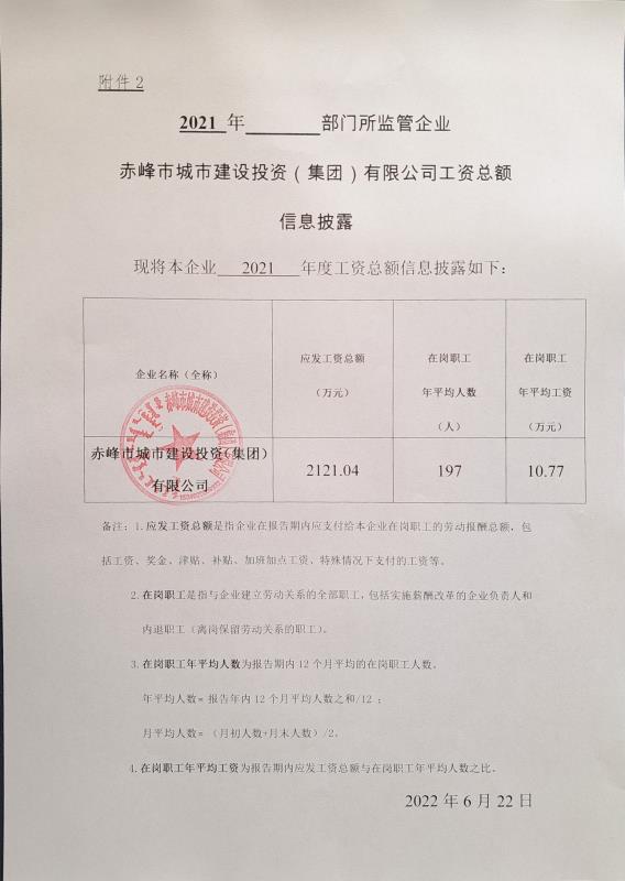 赤峰市城建集團(tuán)2023年度工資總額清…