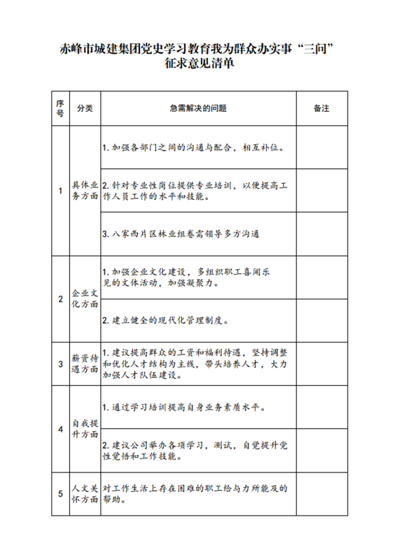 赤峰市城建集團(tuán)黨史學(xué)習(xí)教育我為群眾辦實(shí)事“三問(wèn)” 征求意見(jiàn)清單
